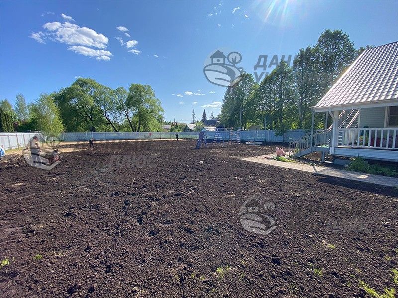 Большое пышное зеленое пространство с травяным покровом радует не только владельца, но и любого, кто проходит мимо! Во время этого реализации проекта нашей бригадой широко использовались средства механизации: мини-погрузчик с сепарирующим культиватором – для выравнивания и распределения плодородного грунта, экскаватор погрузчик – для выполнения работ по подготовке почвы под газон, пересадки растений, распределению грунта.